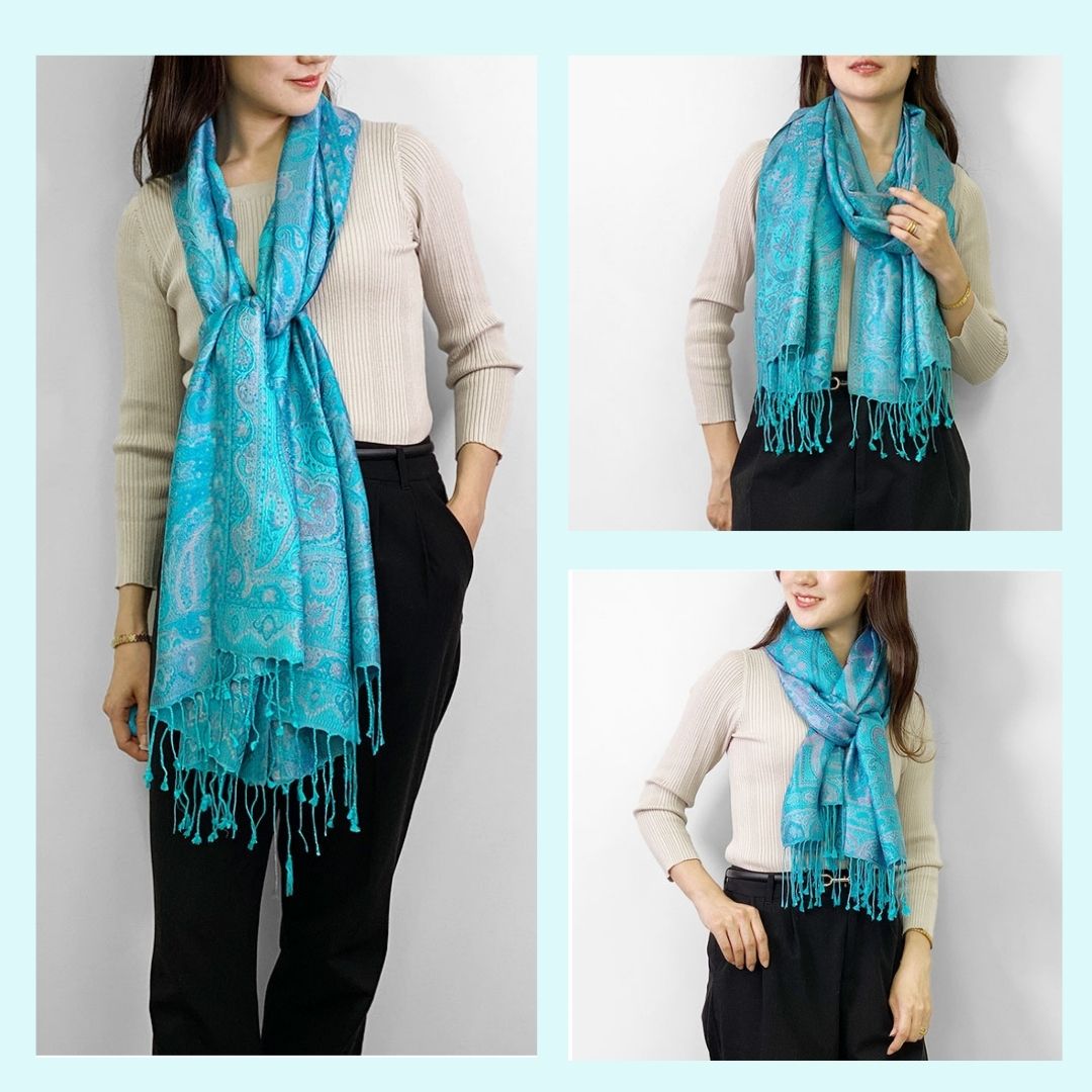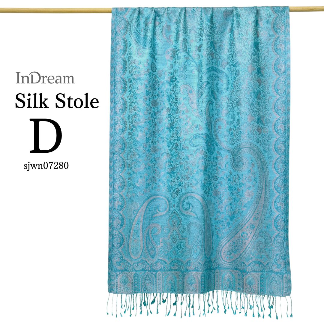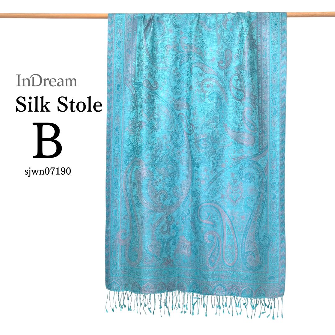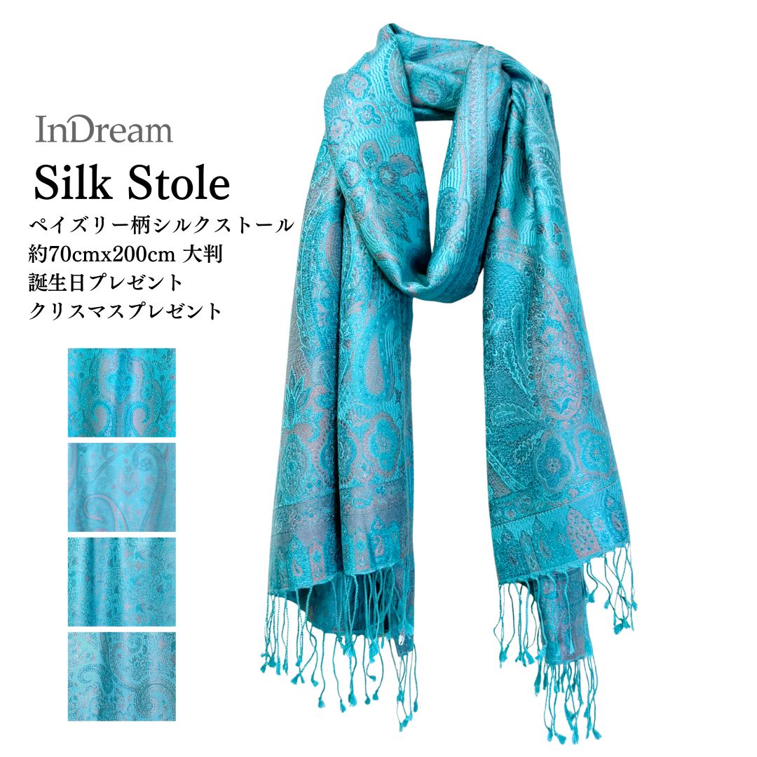 InDream ペイズリー柄 シルク ストール 大判 70cmx200cm ショール ブルー 水色 マフラ― クリスマス ギフト おしゃれ 誕生日 プレゼント おしゃれ 40代 50代 60代 70代 80代