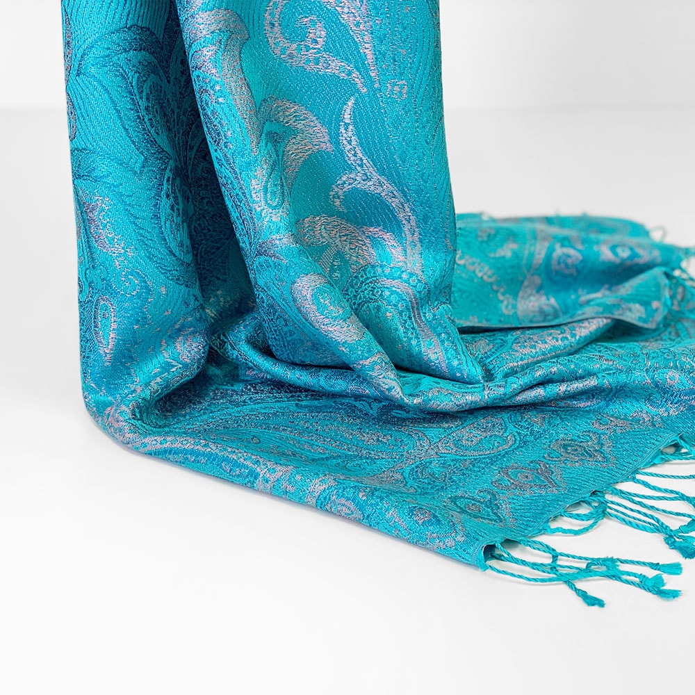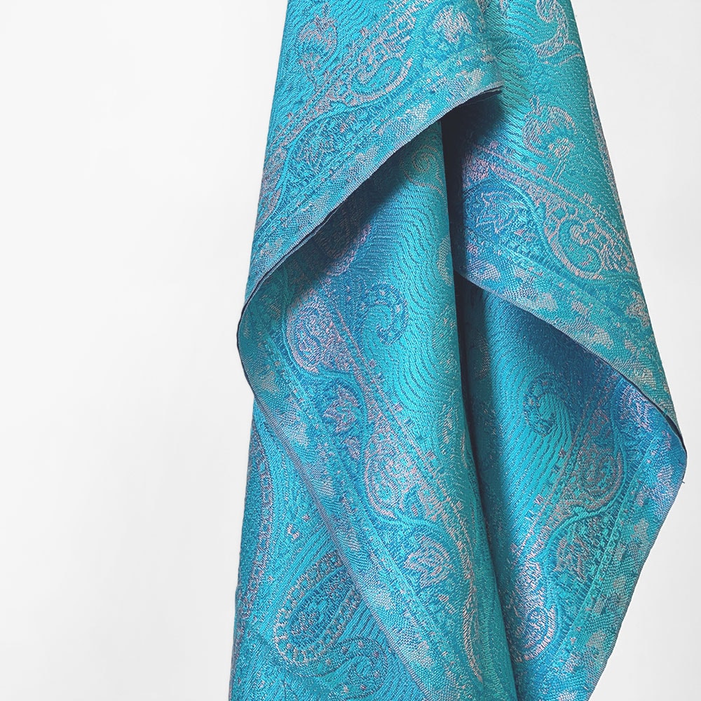 目も覚めるような美しいターコイズブルーのシルクストール。