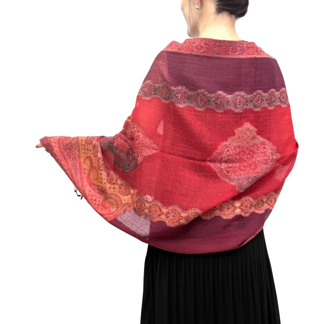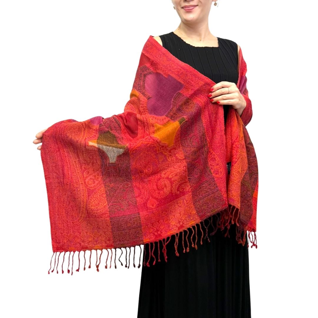 InDream 還暦祝い ペイズリー柄 ウール ストール 赤 一点もの 大判 [70cmx180cm]誕生日 プレゼント クリスマス ギフト 50代 60代 70代 80代 おしゃれ 秋 冬 結婚式 着物 ショール