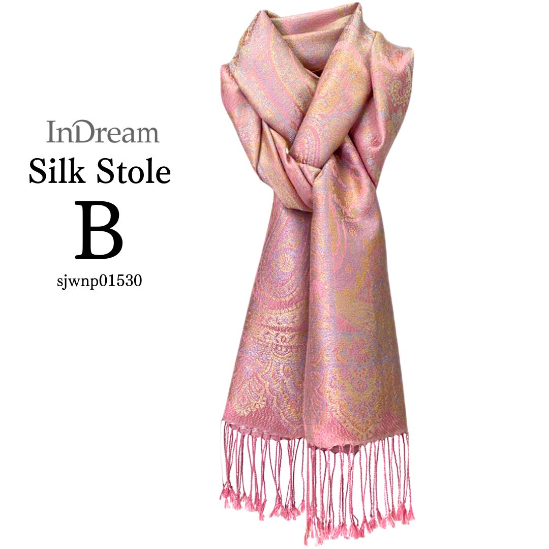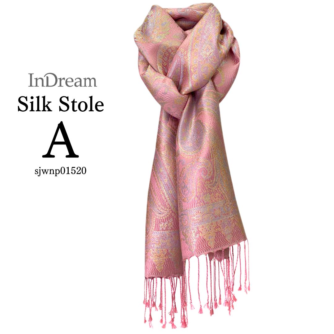 InDream ペイズリー柄 シルク ストール 小判 36cmx170cm スカーフ マフラ― ピンク 古希 お祝い クリスマス ギフト おしゃれ 誕生日 プレゼント 50代 60代 70代 80代