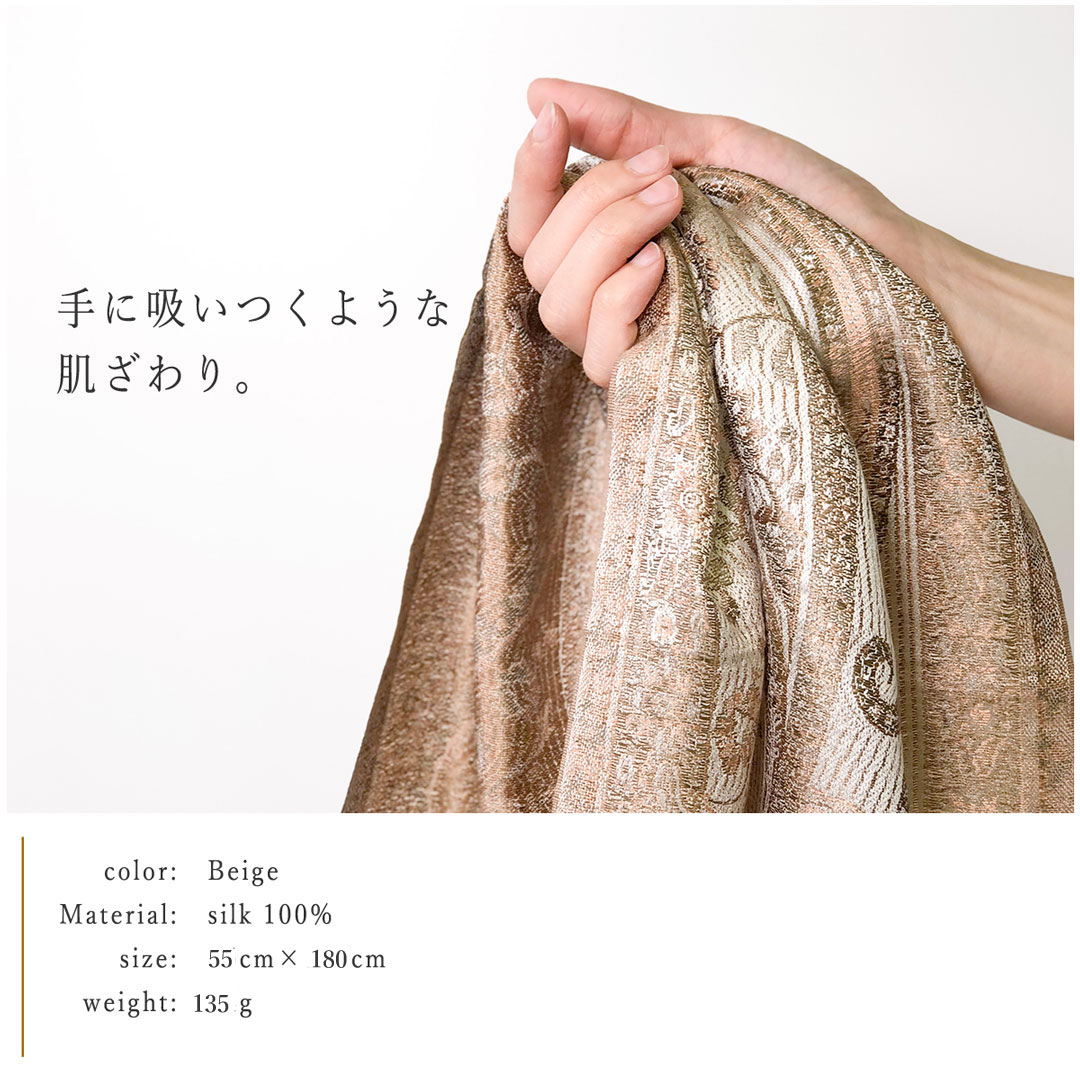 InDream ペイズリー柄 シルク ストール 中判 [55cmx180cm] ベージュ 大判 スカーフ レディース メンズ マフラー 誕生日 プレゼント クリスマス ギフト 50代 60代 70代 80代 おしゃれ ひざ掛け メンズ マフラー 女性