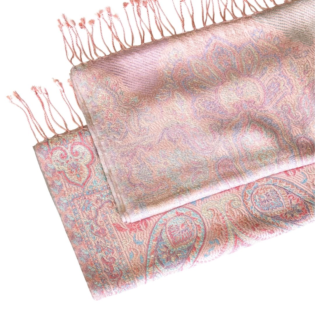 InDream ペイズリー柄 シルク ストール 小判 [36cmx170cm] ピンク 春 秋 冬 誕生日 プレゼント 母の日 ギフト 50代 60代 70代 80代 おしゃれ ひざ掛け メンズ マフラー 女性