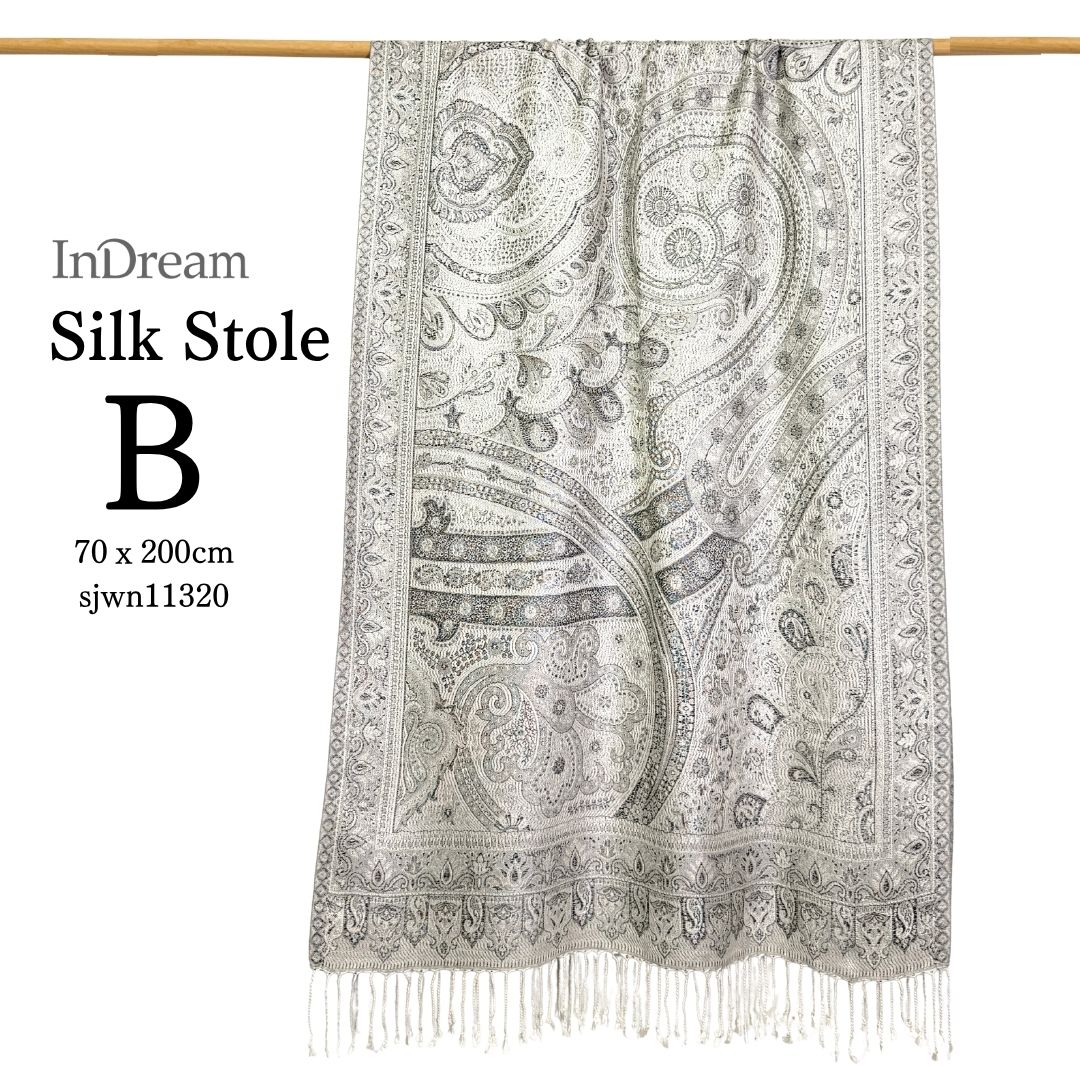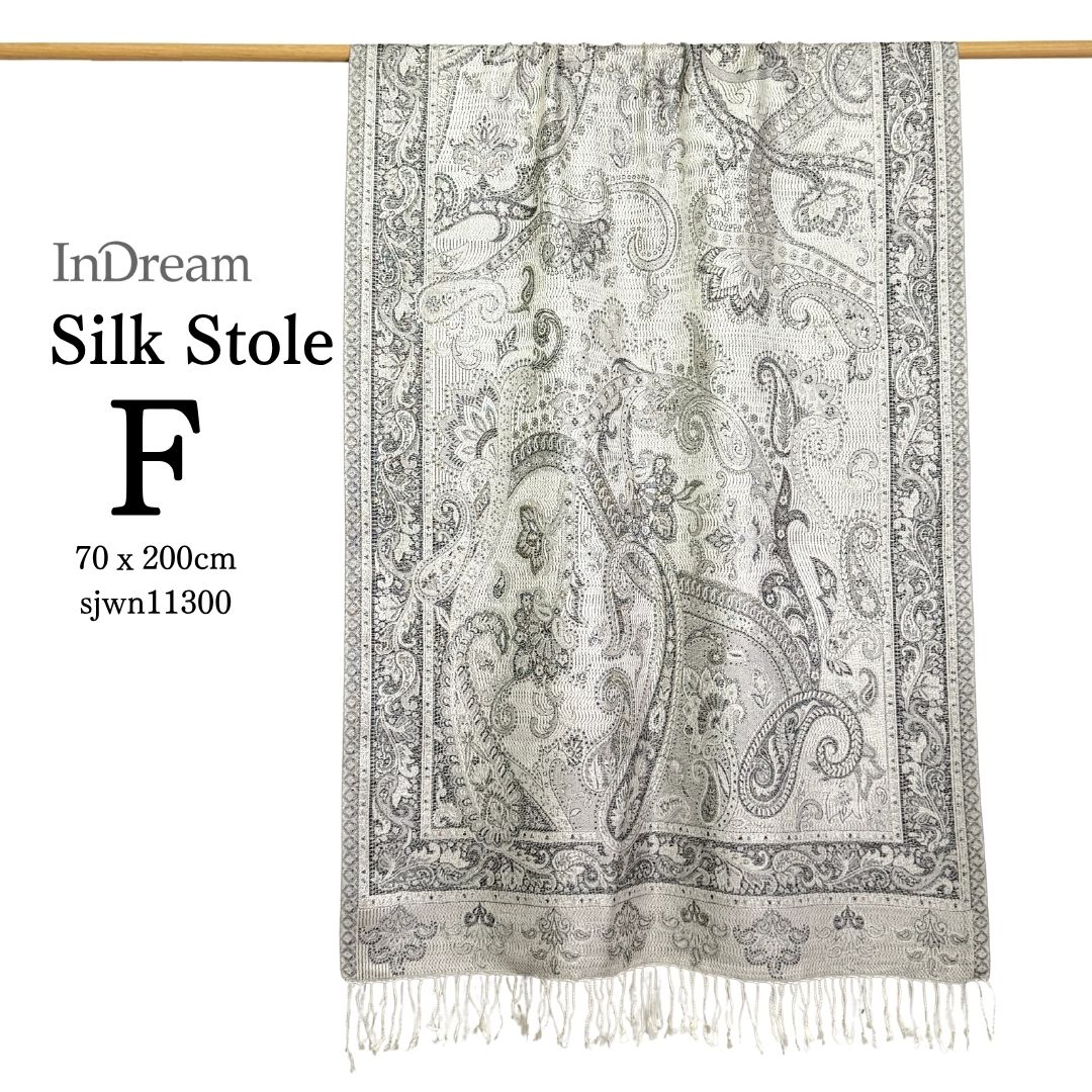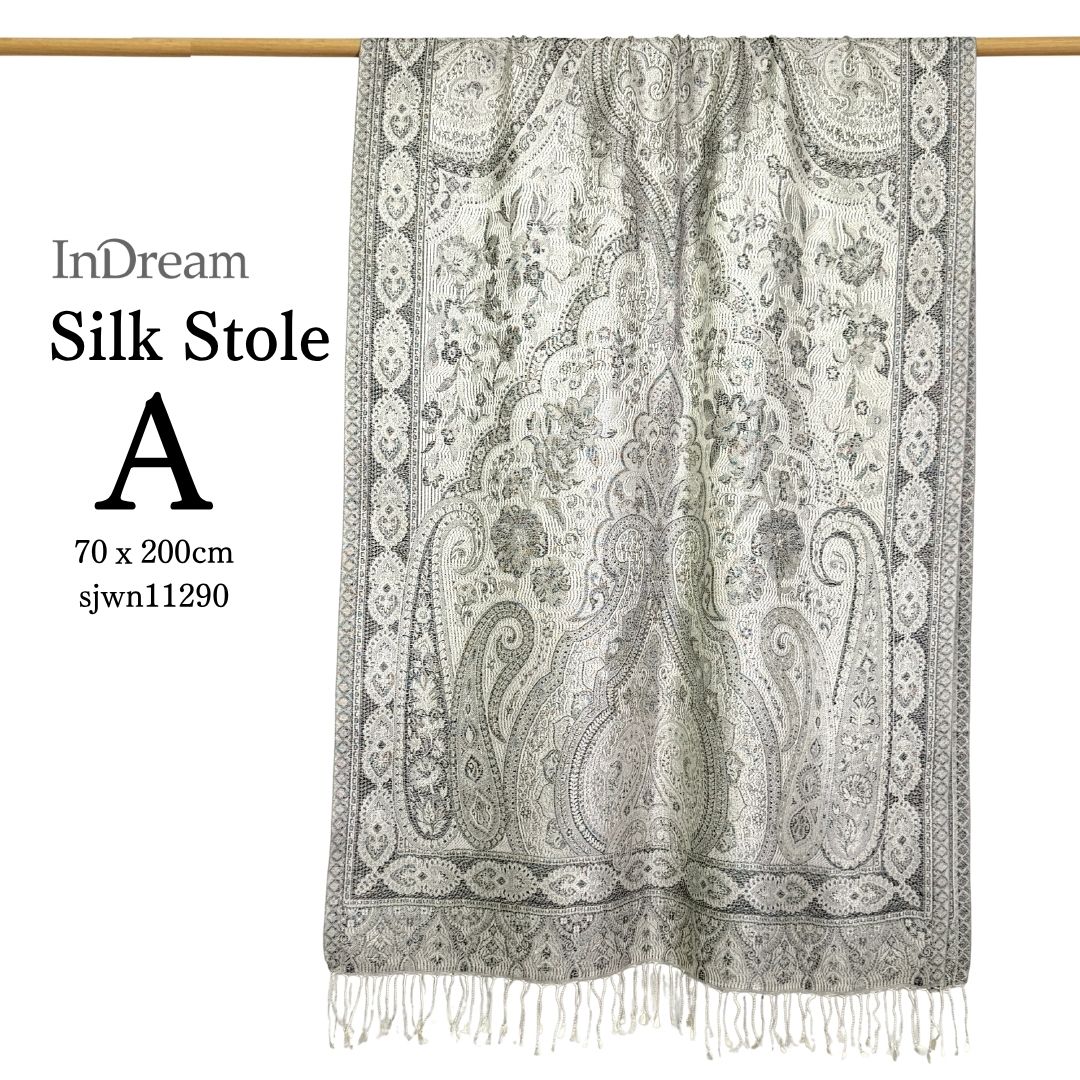 InDream ペイズリー柄 シルク ストール 大判[70cmx200cm]シルバー グレー 人気 秋 冬 クリスマス ギフト 誕生日 プレゼント クリスマス ギフト 50代 60代 70代 80代 おしゃれ ひざ掛け メンズ マフラー 女性