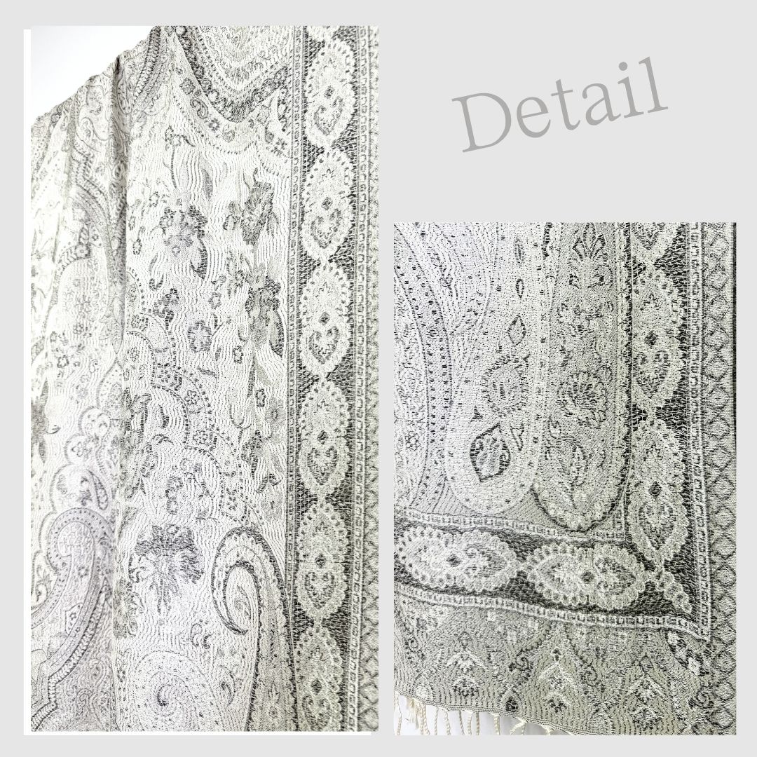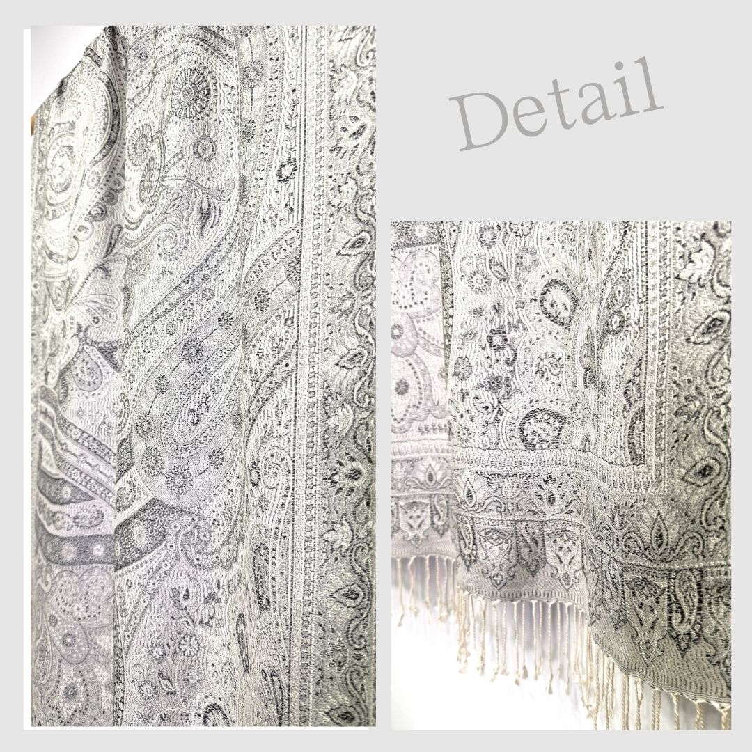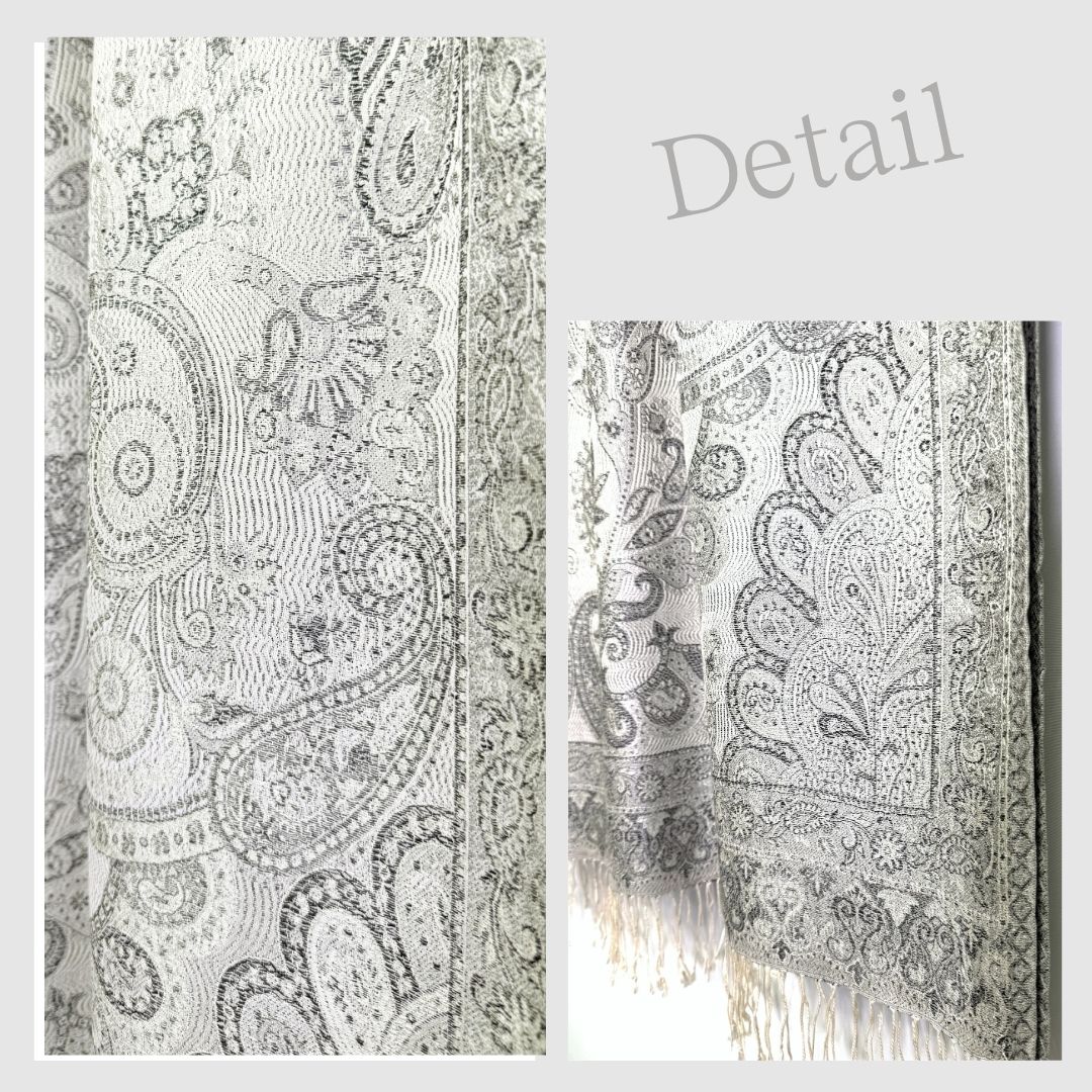 InDream ペイズリー柄 シルク ストール 大判[70cmx200cm]シルバー グレー 人気 秋 冬 クリスマス ギフト 誕生日 プレゼント クリスマス ギフト 50代 60代 70代 80代 おしゃれ ひざ掛け メンズ マフラー 女性