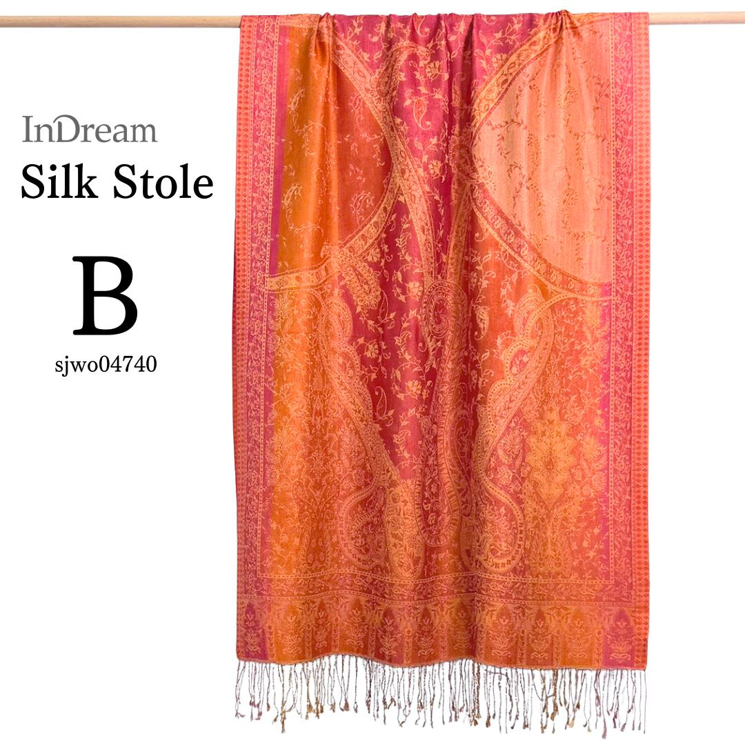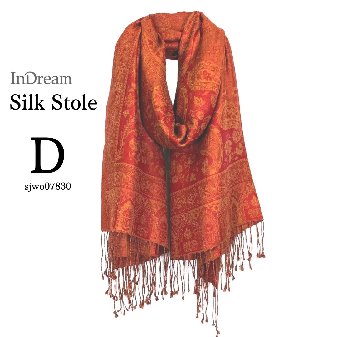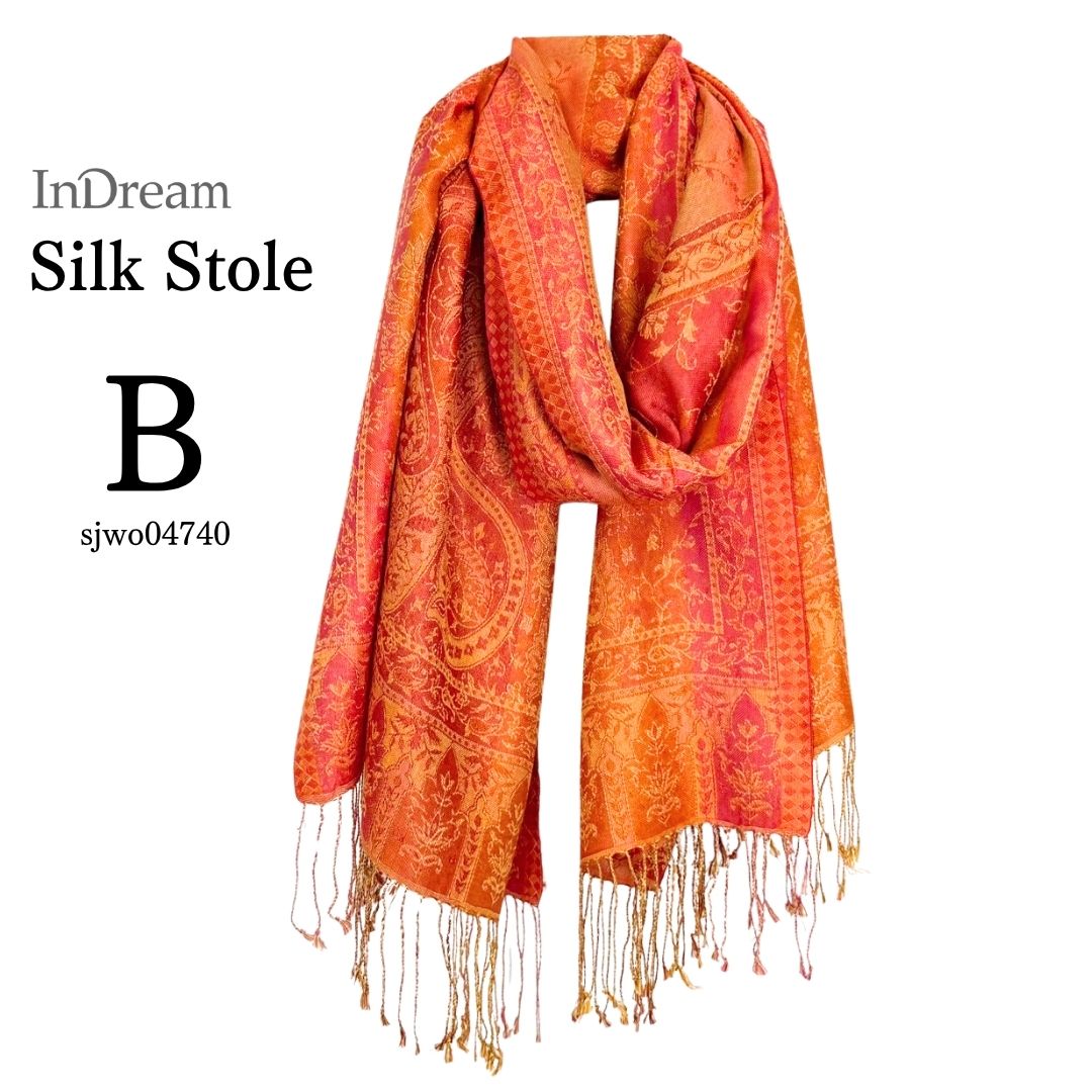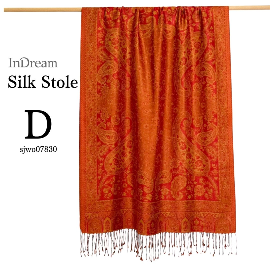 InDream ペイズリー柄 シルク ストール 大判 70cmx200cm ショール 赤 橙 マフラ― プレゼント ギフト おしゃれ 誕生日 40代 50代 60代 70代 80代