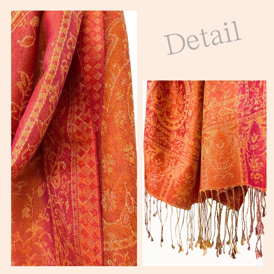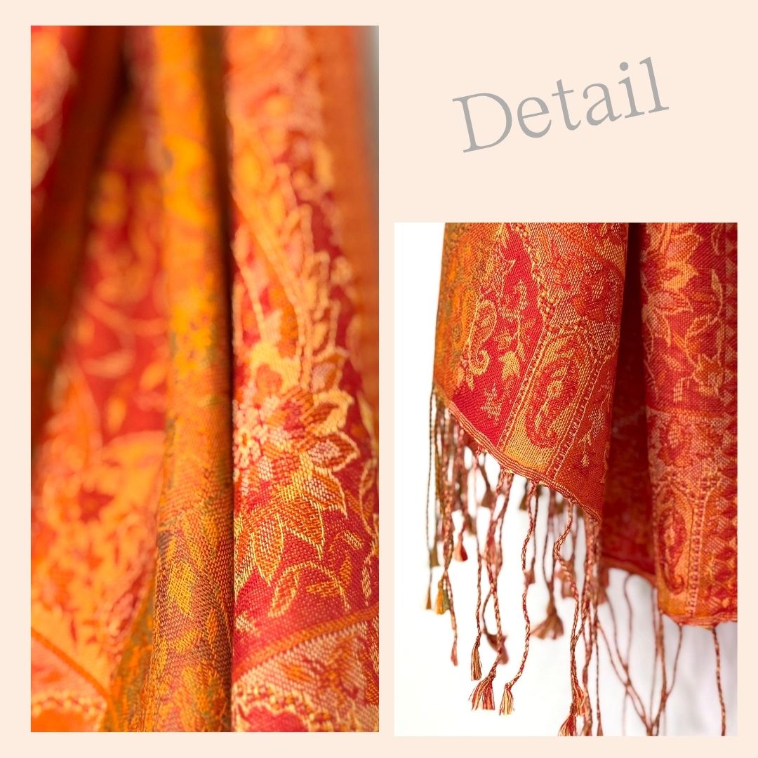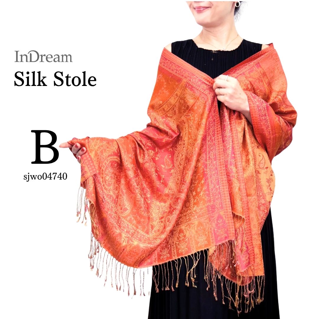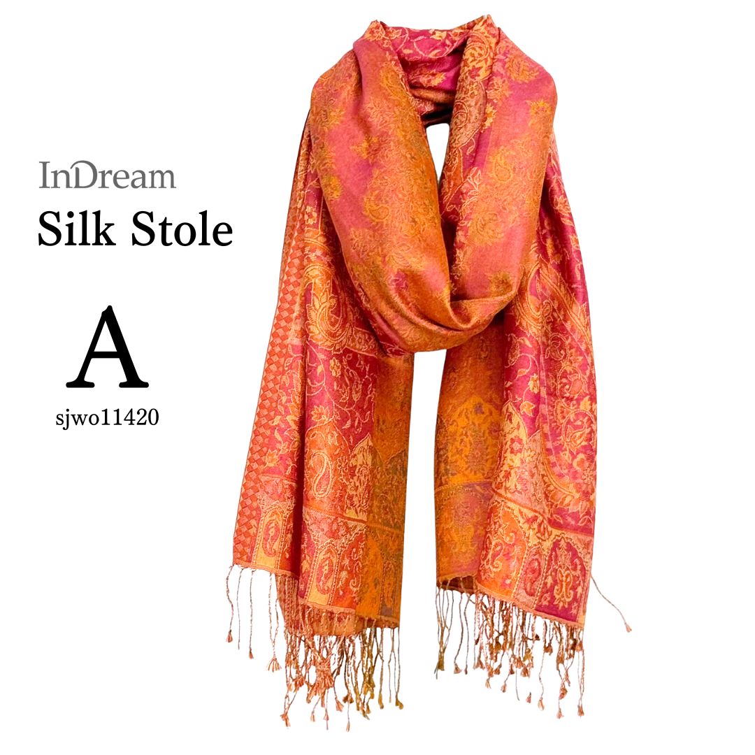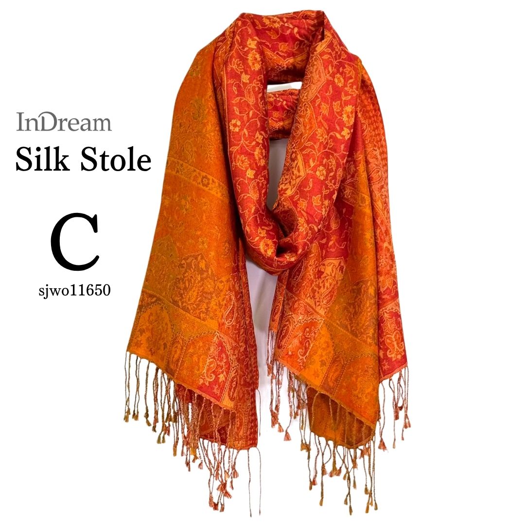 InDream ペイズリー柄 シルク ストール 大判 70cmx200cm ショール 赤 橙 マフラ― プレゼント ギフト おしゃれ 誕生日 40代 50代 60代 70代 80代