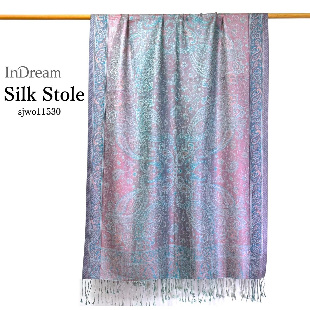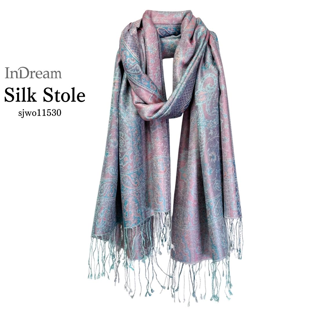InDream ペイズリー柄 シルク ストール 大判 [70cmx200cm] ブルー ピンク パステル 春 秋 冬 誕生日 プレゼント 母の日 ギフト 50代 60代 70代 80代 おしゃれ ひざ掛け メンズ マフラー 女性