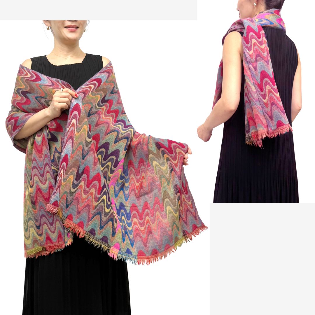 秋冬の装いに、彩りとぬくもりを添える一枚。 柔らかな肌ざわりと多色使いのリーフ柄が、季節のお出かけを華やかに演出します。 同系色でも配色が逆転し、さりげなく雰囲気が変化、全く色が違うものもあります。 やや厚手でしっかり暖かいウール素材、長さもたっぷり200cm、重さ約220gで安心感のある着心地です。 |