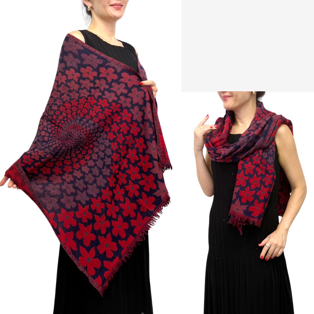 InDream ペイズリー柄 ウール ストール リバーシブル 大判 [70cmx200cm] 赤 紫 古希 還暦 祝い 誕生日 プレゼント クリスマス ギフト 50代 60代 70代 80代 おしゃれ 秋 冬 ひざ掛け 着物 ショール