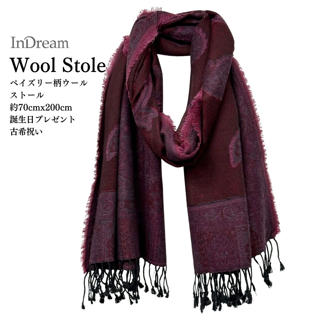 InDream ペイズリー柄 ウール ストール 大判 [70cmx200cm]紫 パープル 春 薄手 古希祝い 誕生日 プレゼント 母の日ギフト 50代 60代 70代 80代 おしゃれ 秋 冬
